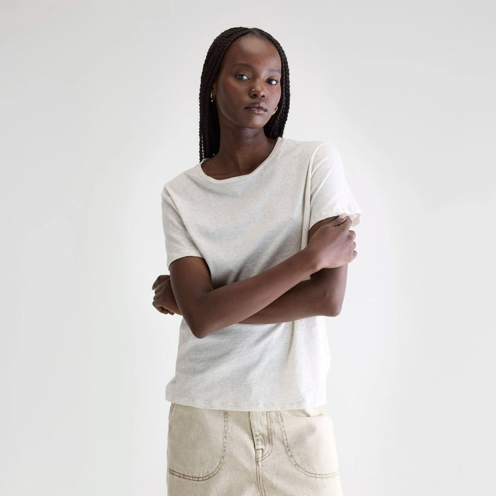 Regular, short sleeve, crew neck t-shirt in chiné grey cotton veil.