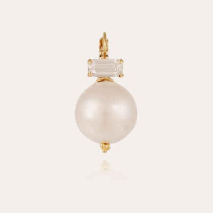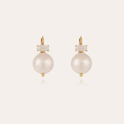 A timeless must-have Decalco (Boule Chinoise), gold plated and Mother-of-pearl colored resin stud earrings decorated with strass.