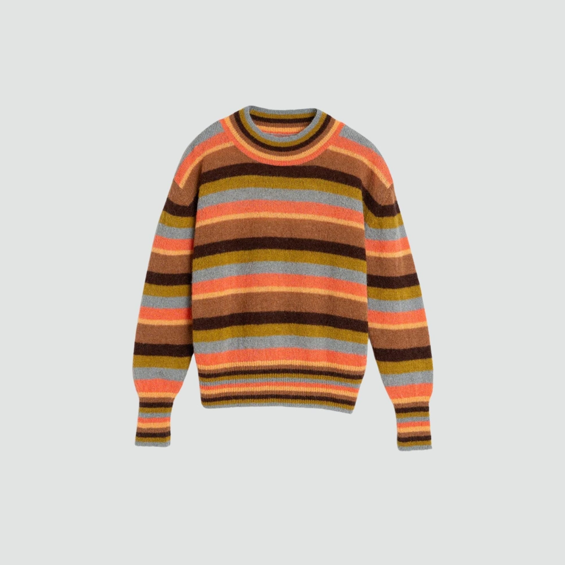 This multicolored sweater will add color to your look. It has a crewneck, dropped shoulders and long sleeves. The mix with mohair gives a warm feeling to the garment. You won't get cold for sure!