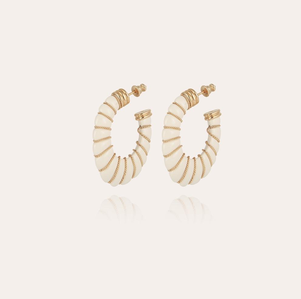 Hand-polished resin earrings inspired by the delicate movement of the waves. They are embellished with a 24k gold chains.