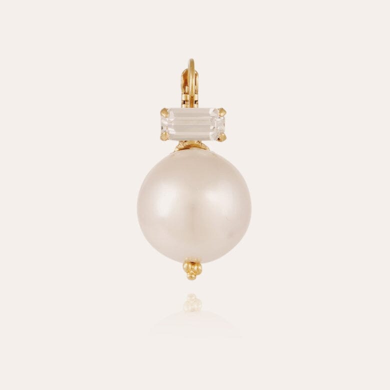 A timeless must-have Decalco (Boule Chinoise), gold plated and Mother-of-pearl colored resin stud earrings decorated with strass.