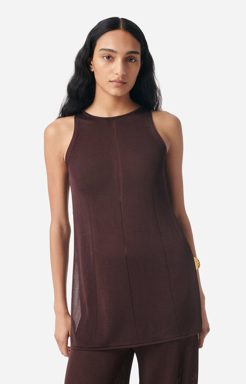 A flowing and airy viscose knit top, designed to follow your movements and bring a touch of light elegance to your silhouette.