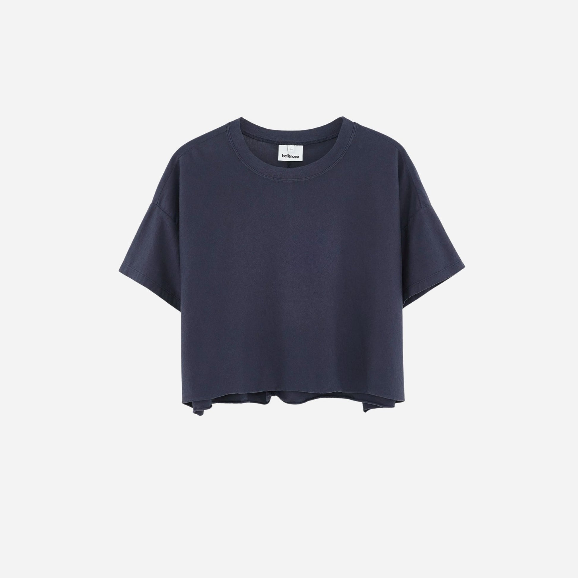 Oversized cropped t-shirt with a back seam, made from lightweight cotton jersey in navy blue