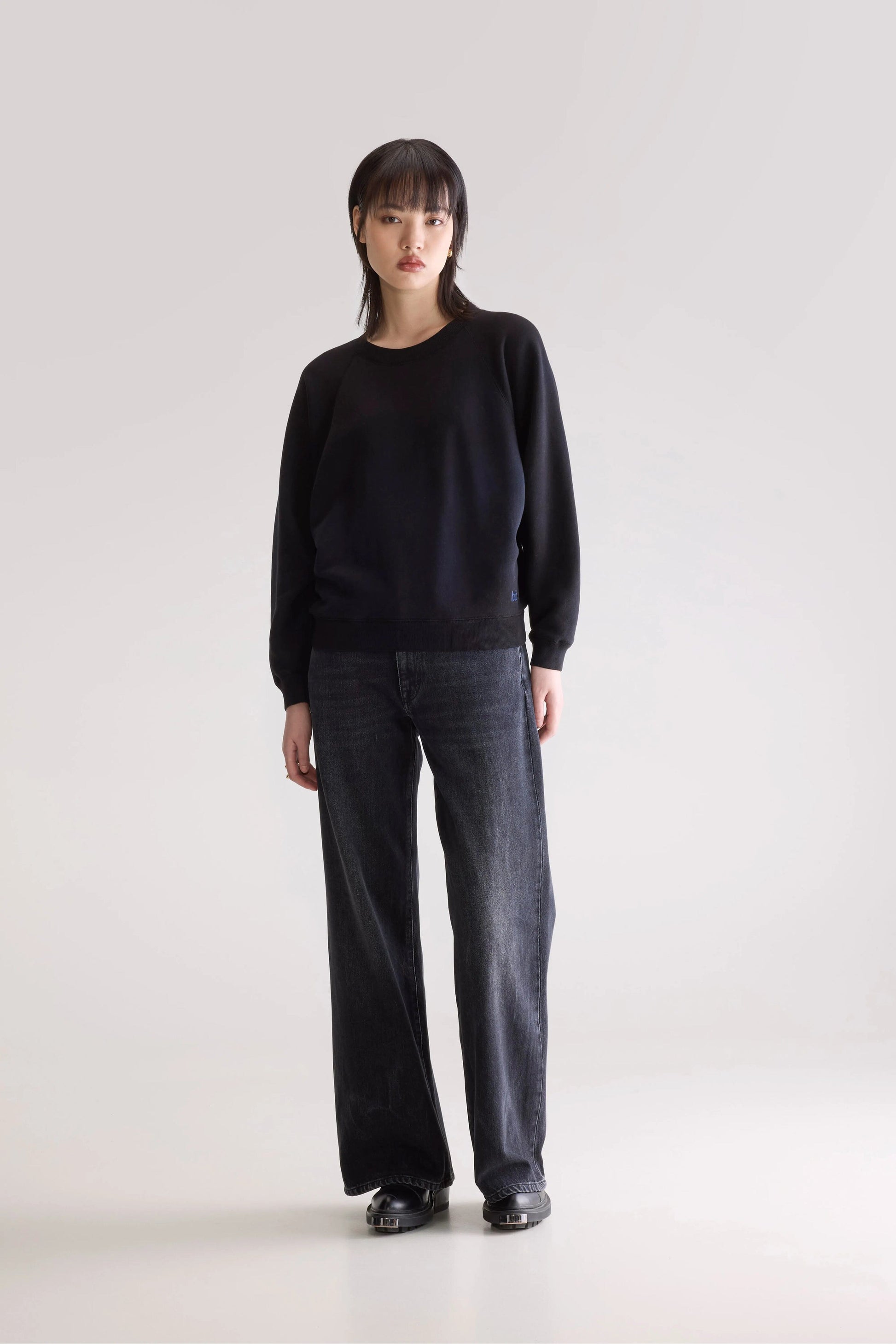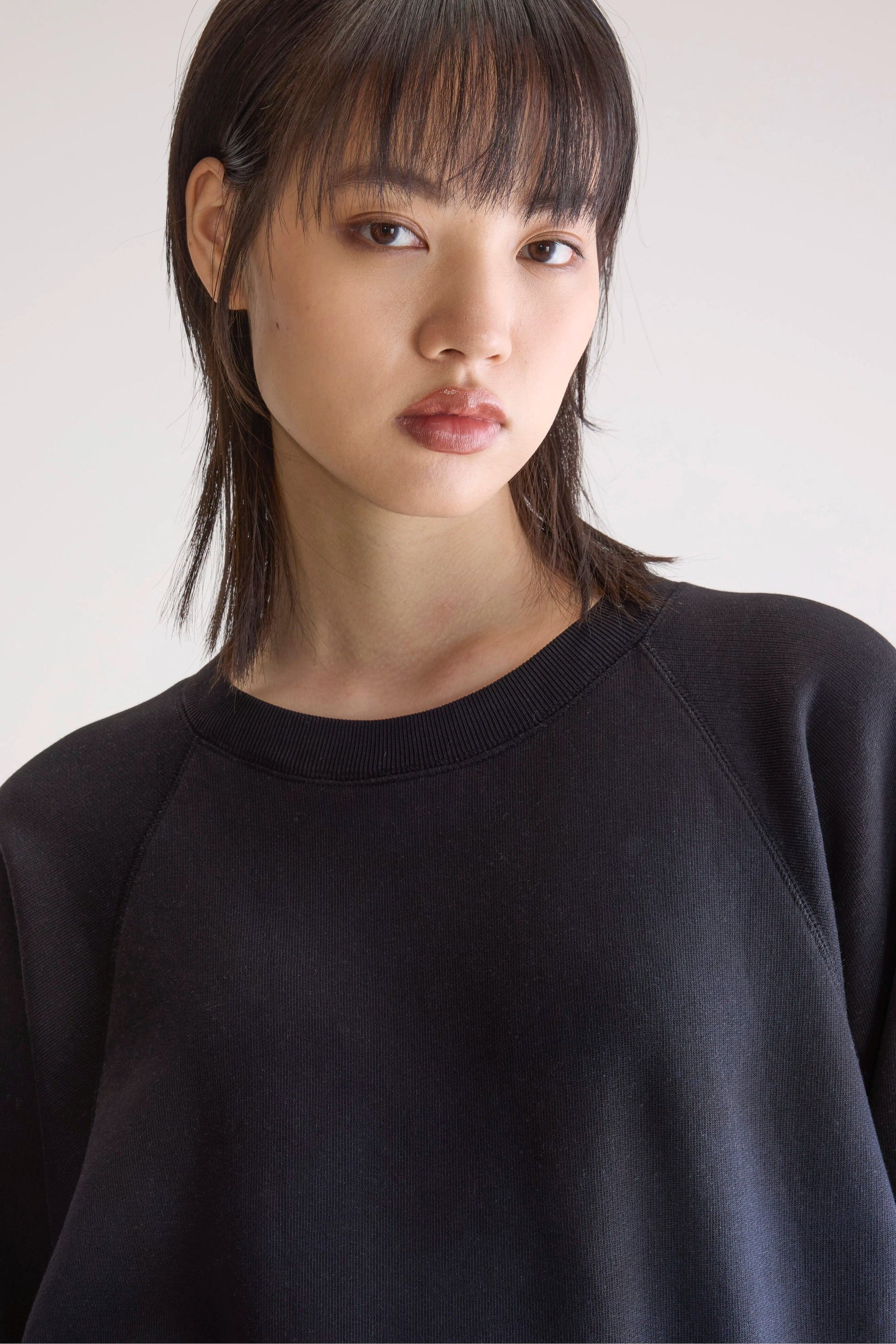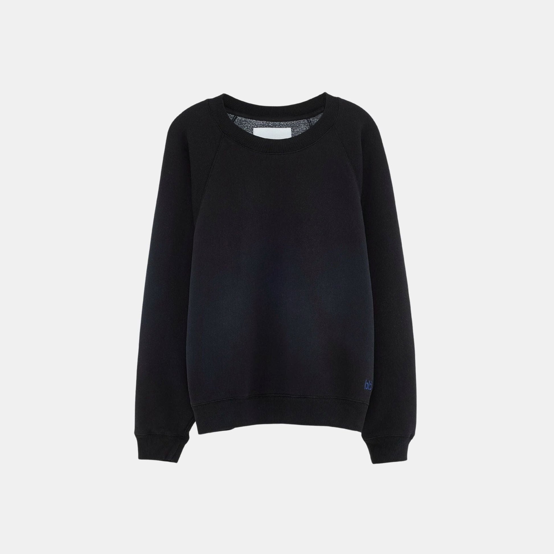 Relaxed crewneck sweatshirt in garment-dyed washed black blue cotton fleece.