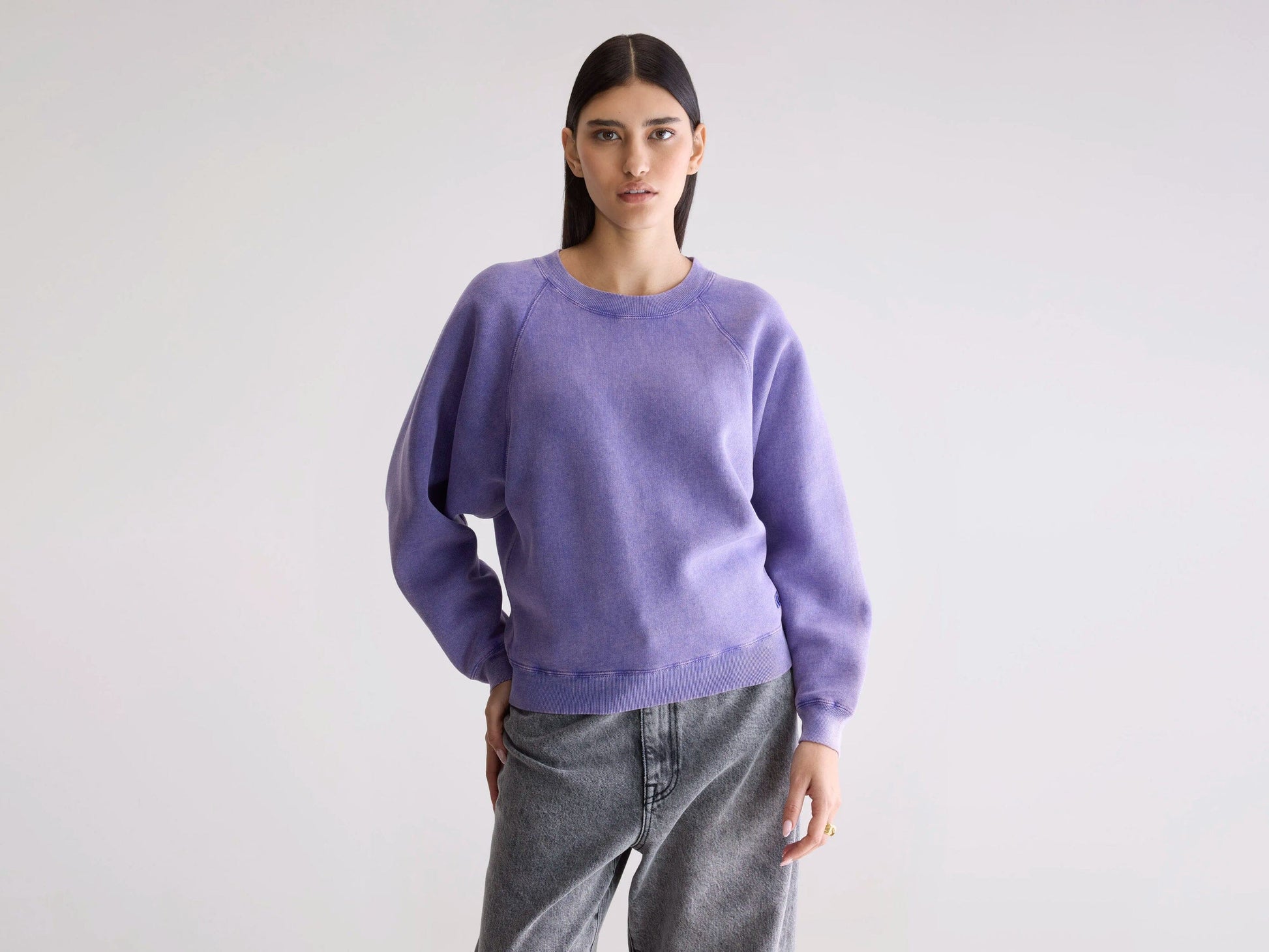 Relaxed crewneck sweatshirt in garment-dyed purple cotton fleece.