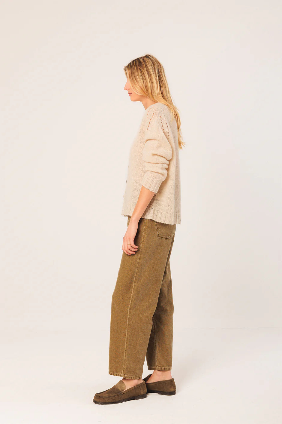 Basic cardigan with alpaca is both warm and lightweight.