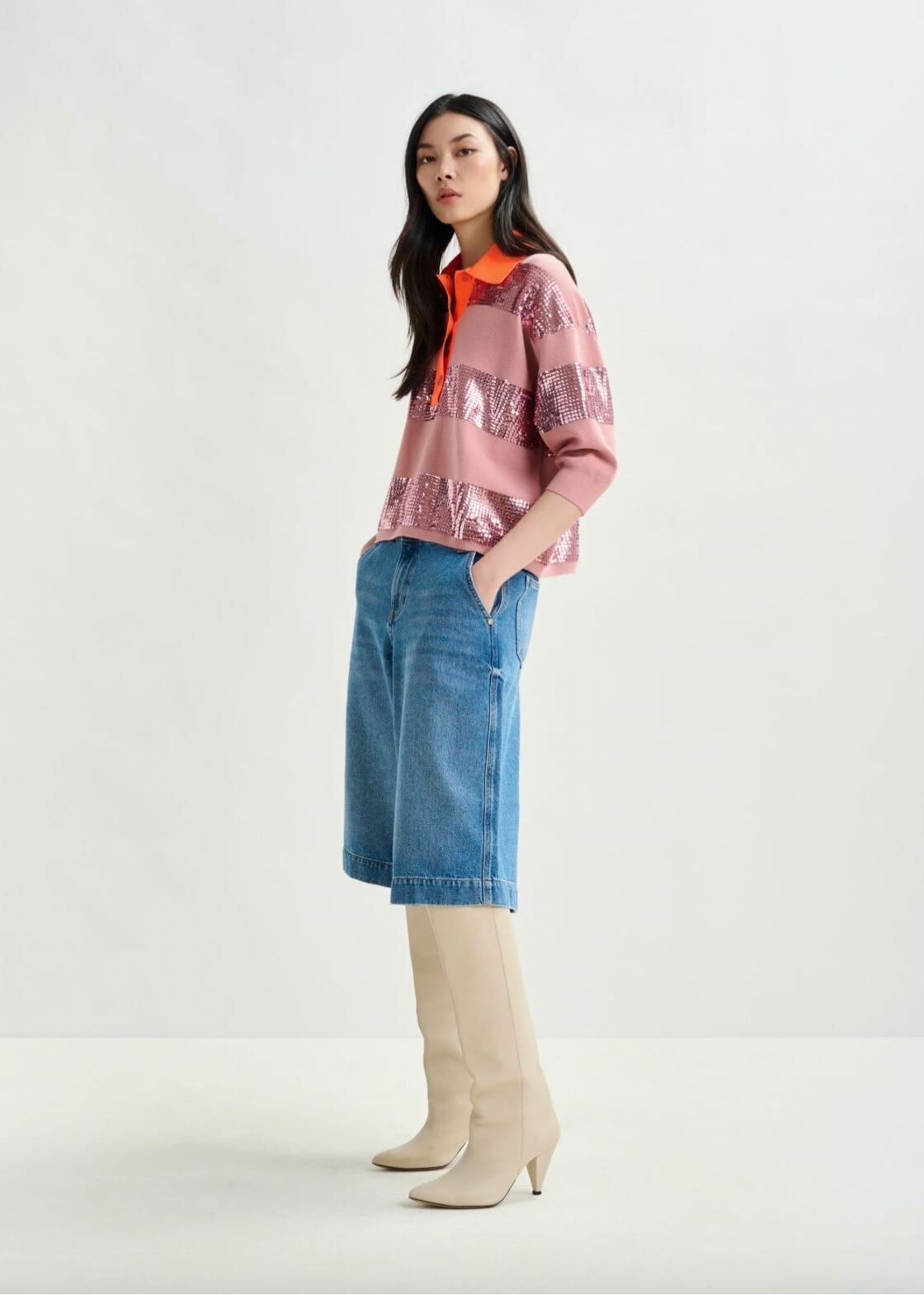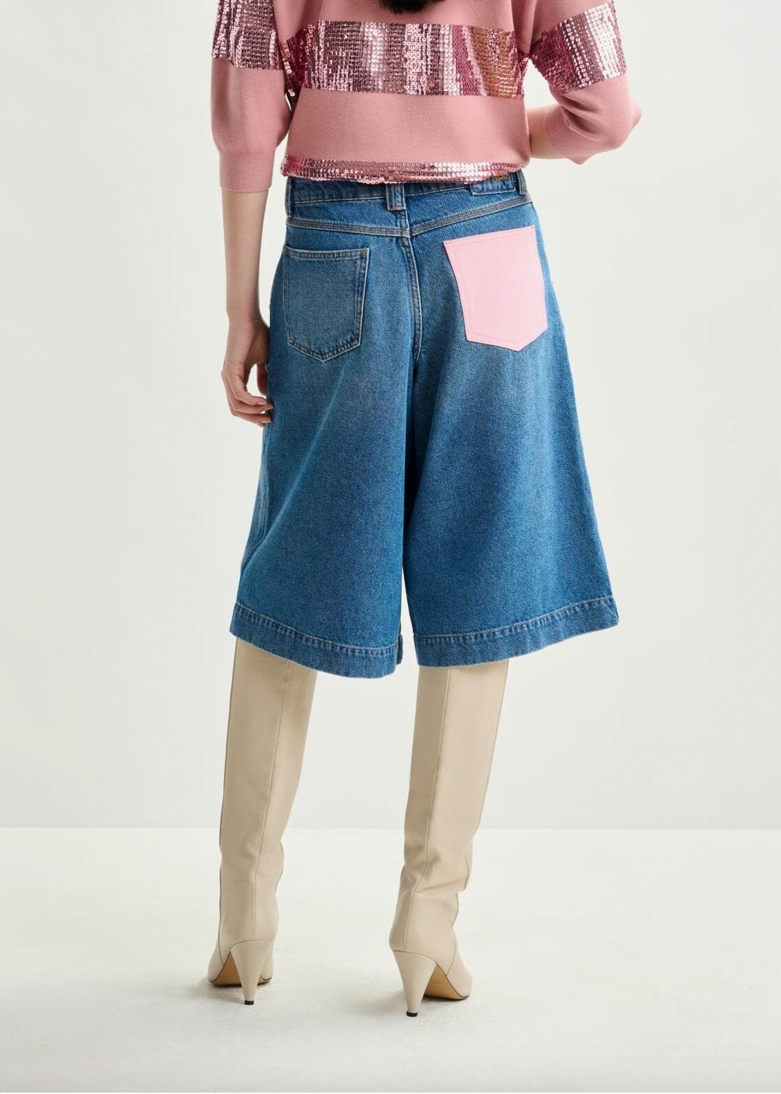 Denim bermuda pants are designed with a relaxed fit that flatters the silhouette. Featuring a low rise and a tapered leg for a modern twist, they’re finished with a zip and button fastening and classic belt loops. Functional details include slanted front pockets, welt pockets and a branded logo tab accents the back waistband.