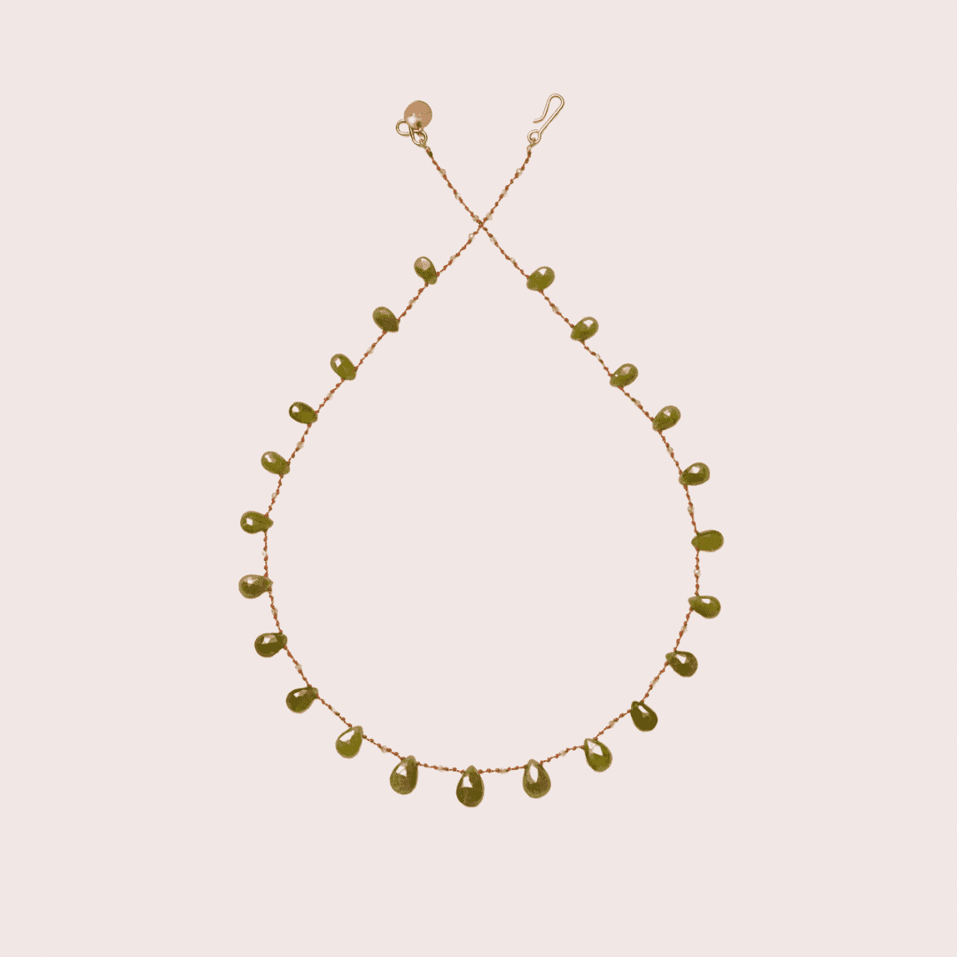 Emblematic assembly of the Ivarene house, the stones delicately follow one another on a silky cord, held and separated by three knots, the necklace closes with our 14k gold filled gold clasp.