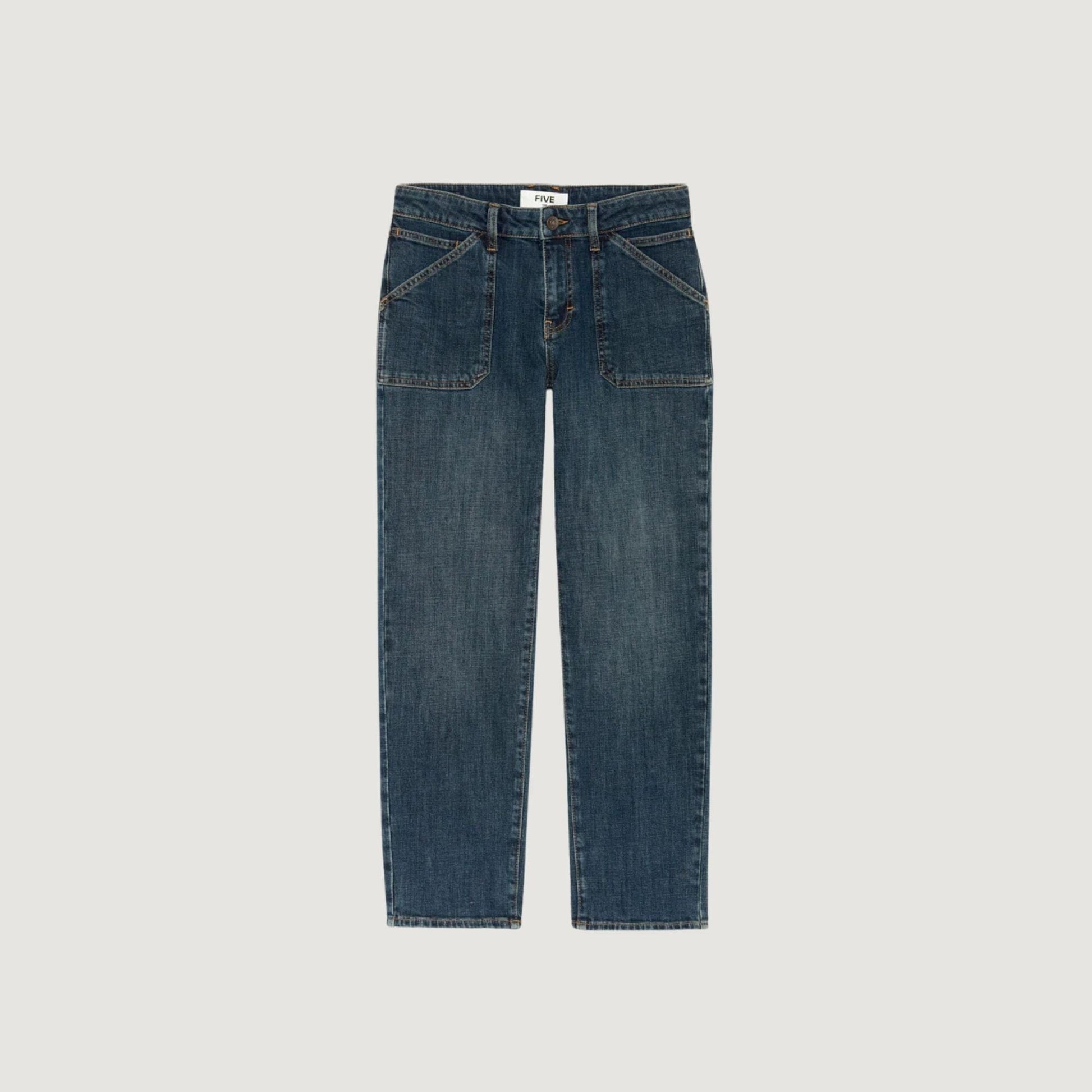 - Closure with a FIVE branded button and a hidden zip under the flap