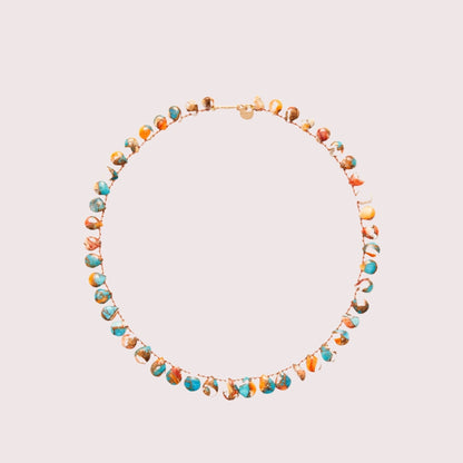 The stones, delicately spaced by three subtle knots, flow harmoniously along a silky cord, in the signature "Drops and Beads" design of the IVARENE house. The 14k gold-filled clasp adds a final touch of elegance, securing this piece with refinement and grace.