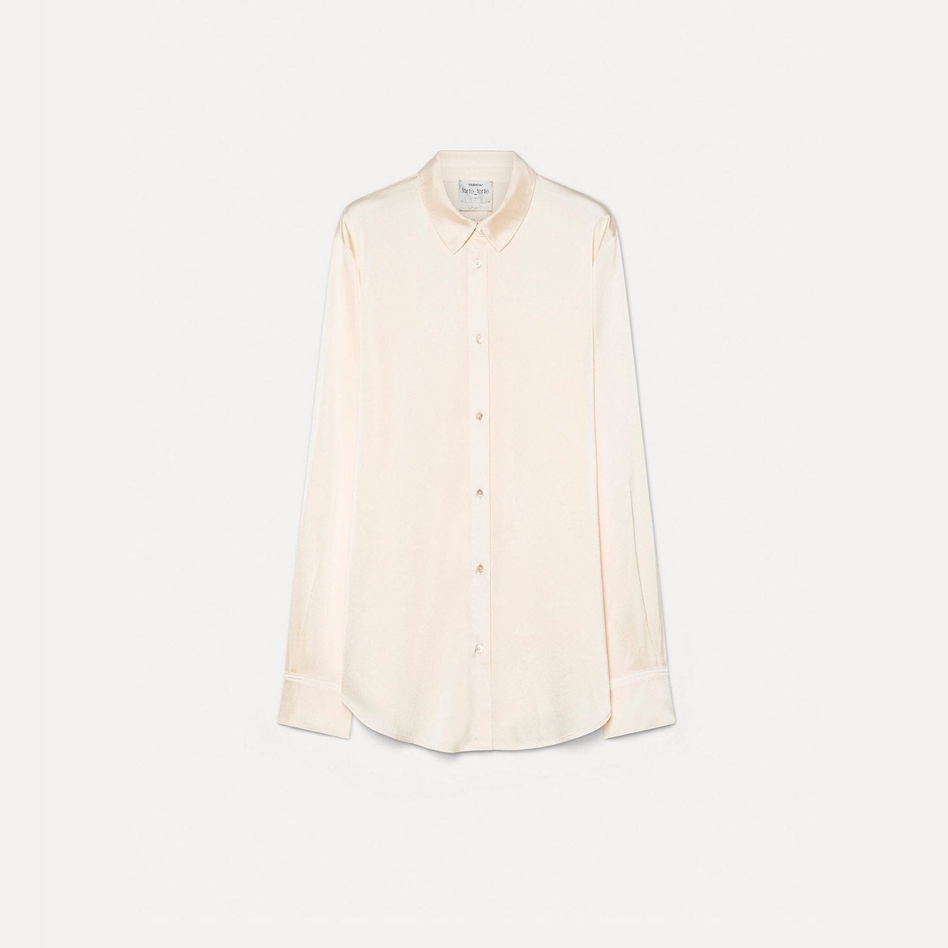 The pared–back aesthetic of this shirt in silk satin plays up the sumptuous texture of the fabric. lustrous and doused in the palette of the season, it has a soft sheen and will be ideal layered under a drapey blazer or a boyish vest.